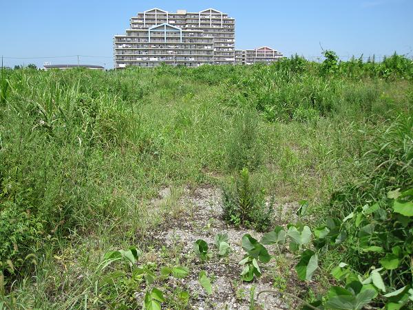 *ここも開発の対象になっているが、中央にうつっている大きな椎の木の周辺のみ、公園化される模様。 |