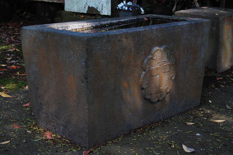 <館山空の工事で見つかった江戸初期の切り石を使用した手水石>  |