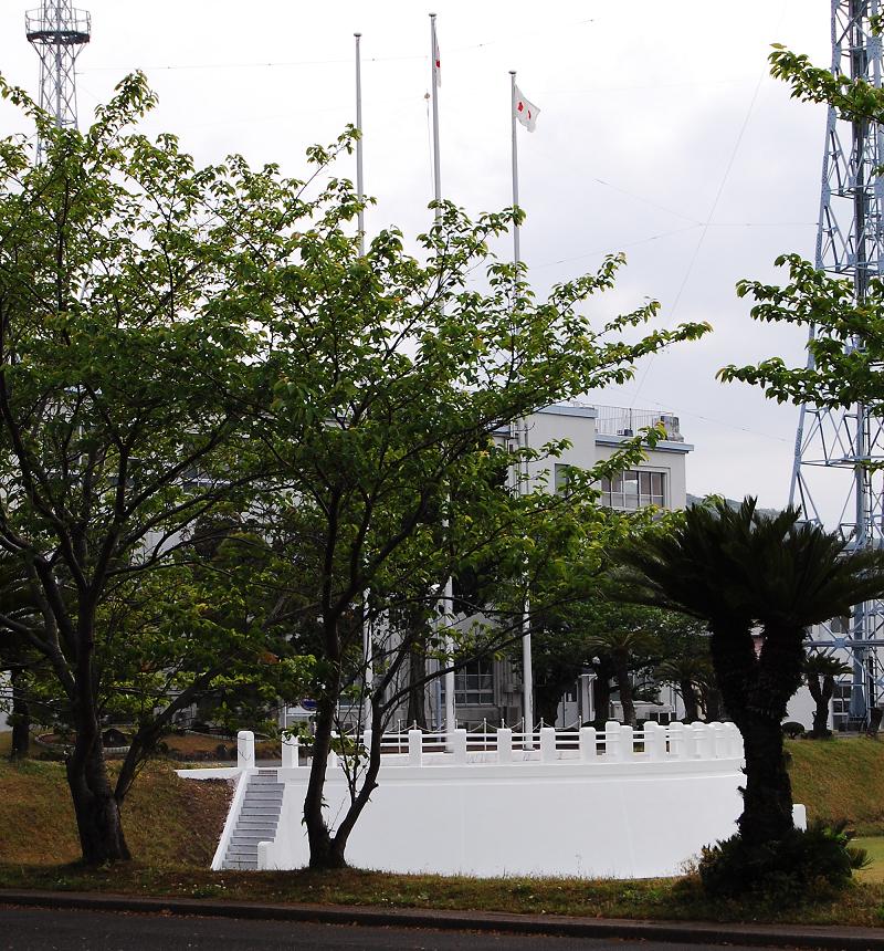 本部庁舎、国旗掲揚台は、現在も海上自衛隊で使用されている  |