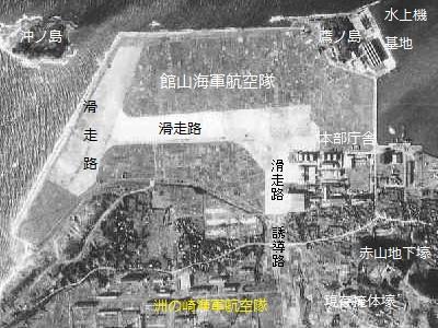 さて、完成した飛行場は、埋立地の中央部分を北西と中央の東西に二本の滑走路、南東に本部庁舎、兵舎のある館山海軍航空隊の主要部分とし、北東には鷹ノ島、その近辺の海岸線には水上機の基地があって、南東には頼忠山(赤山)、その付近まで誘導路が敷かれ、誘導路に沿って掩体壕が設置された。館山海軍航空隊の南側には、のちに整備のための特殊な航空隊として洲ノ崎海軍航空隊が設置された。洲ノ崎海軍航空隊は、館山海軍航空隊の開隊よりも13年後の1943年(昭和18年)6月に開隊した、兵器整備練習航空隊で、射爆・無線・写真・光学・電探・雷爆などを専門とする教育航空隊であった。