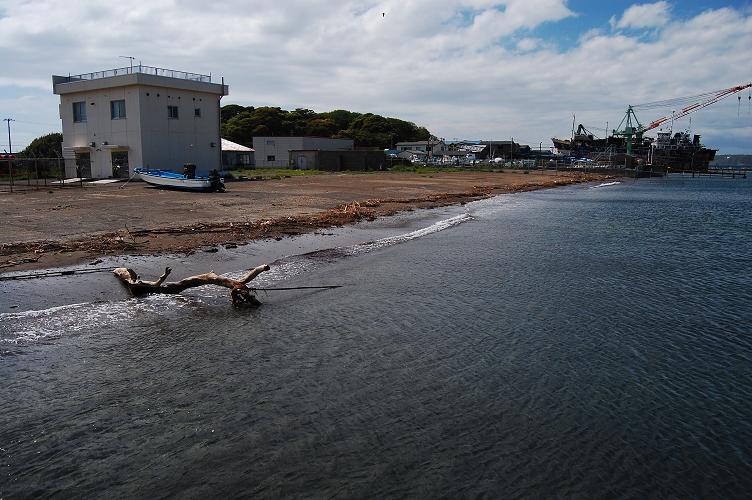 現在、その水上機用の滑走台は海上自衛隊や造船会社の敷地内になり、一般に立ち入ることはできないが、釣人用に幅1.5mほどが開放された海上自衛隊の通路を利用して見ることができる。 この館空水上班の滑走台は、戦後米軍が初上陸した地点でもある。すなわち、1945年(昭和20)年9月3日午前9時20分、日本がミズーリ艦上で降伏文書に調印した、そのまさに翌朝にカニンガム准将に率いられた米軍第8軍第11軍団の3,500名は、上陸用舟艇を使って館山に上陸したのだが、その場所が館空水上班の滑走台だったのである。  |