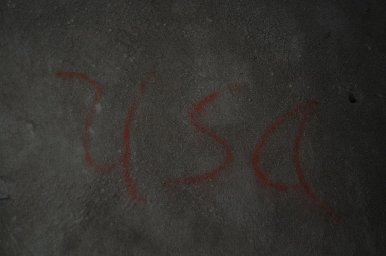 なかには、妙なものもあり、戦後、米軍兵士が落書きしたらしい、”USA”という赤い文字が、ライトに浮かぶ。 また、戦後この壕に住み着いてキノコ栽培をしていた人がいたそうだ。  |