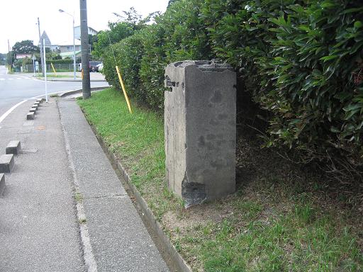 | 前述の通り、第二航空隊本部は国道247号線沿いの町営住宅河和団地敷地にあったが、本部の建物自体は残っていない。国道沿いに「つくだに街道」の看板のある場所を西へ入った、現在の河和中学校の校門近くに第二航空隊の正門跡がある。また、河和中学校の南側道路は、真直ぐ東へのびていて、海にいたる。その道路を西へ進むと、ぐるりと浜交差点の場所にでるが、これは県道付替えによるいわゆる「海軍道路」である。「海軍道路」の海側一帯には航空隊関連設備があって、現在の河和交差点から浜交差点までの直線道路は住民らの通行は禁止であった。 上述の第二航空隊本部正門跡付近に門衛がたっており、その西側の高台には今は住宅地などとなってなくなったが、かつて対空機銃陣地跡があった。しかし、高高度も飛ぶことのできる米軍機に対する機銃で、どれほどの威力があったかは疑問である。 |