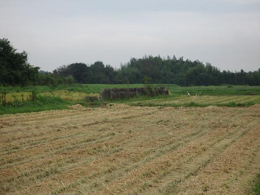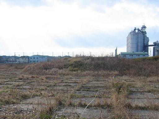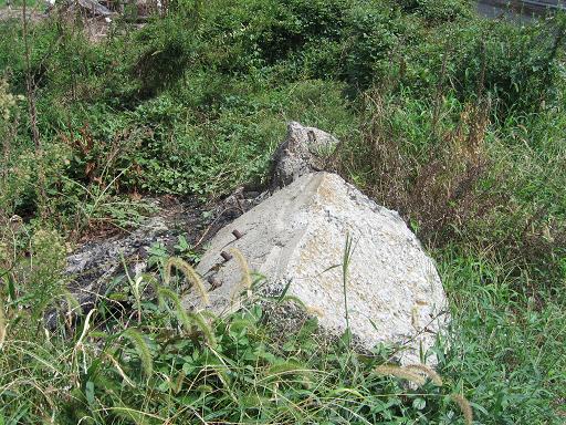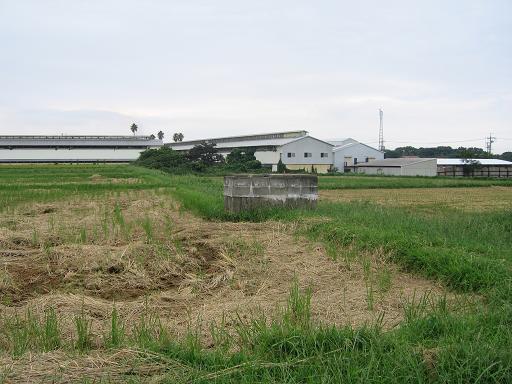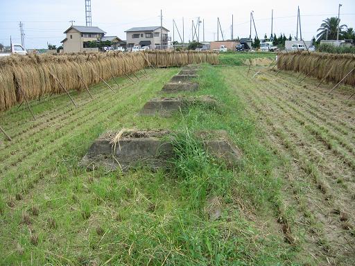 無線標識所敷地は、主に練兵場だったところである。見たことろ、整地されていて、シェルター以外は何か残っている様子もないが、その西側の兵舎があった部分に若干の遺構がある。それは、兵員浴場*のコンクリート壁である。分厚いコンクリート壁が一列建っているが、田圃のなかであり、少し異様な風景である。