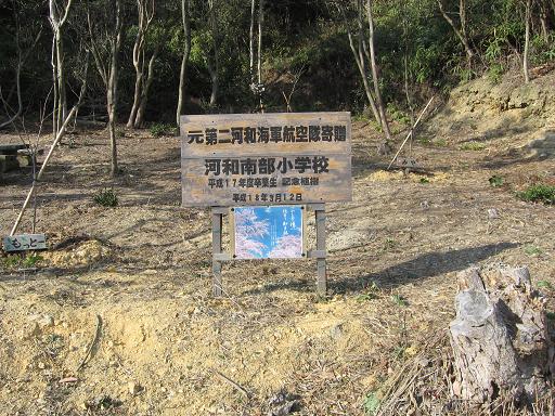 (追記)対空機銃陣地近く、新池対岸には第二河和航空隊の方々と河和南部小学校の学童により、桜の若木の記念樹が植えられている。「寄贈 元第二河和海軍航空隊 橋沼兵曹」という看板も見える。第一航空隊基地跡と第二航空隊関連の場所がクロスオーバーしている。 |