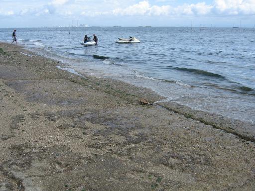第ニ航空隊は、海軍の基地らしく、海に近い低地に展開していた。遺構も散在しているが、やはりこの基地の最大の遺構は、海岸にあるスリップであろう。スリップとは、日本語で「滑り」とも言うが、水上機を海に下ろす、あるいは海に着水した水上機を海から引揚げるために、必要な斜面であり、その勾配は14分の1、角度で言えば4度ということになる。 河和漁港の200mほど東にある、北側スリップは約50mの長さがあり、東側には実戦機用の大きなスリップとその南の練習機用のスリップがある。東側の大きなスリップは、長さが250mほどあり、その南のスリップも約80mの長さがある。 北側も東側も、所々大きな亀裂が入っているが、これは爆撃の跡であるという。 |