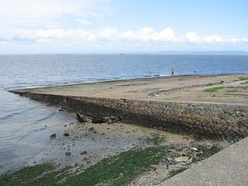 スリップのほか、東側スリップの西側の平坦地に、「エプロン」がある。なんの変哲もない、ひび割れたコンクリートのように見えるが、スリップから飛び立つ水上飛行機を駐機しておく場所であり、遺跡の一部である。 |