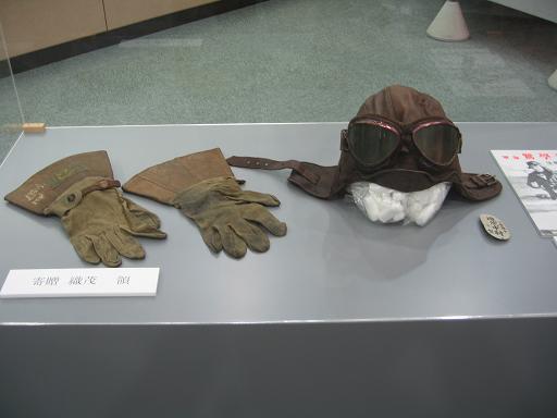 <飛行帽と飛行眼鏡、手袋(海軍中尉が使用)> |