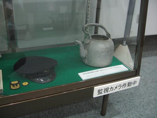 そのほか、変わったところでは、航空隊で使っていたヤカン。これには、ちゃんと海軍のマークが入っている。兵舎か酒保で使用されたものであろう。 |