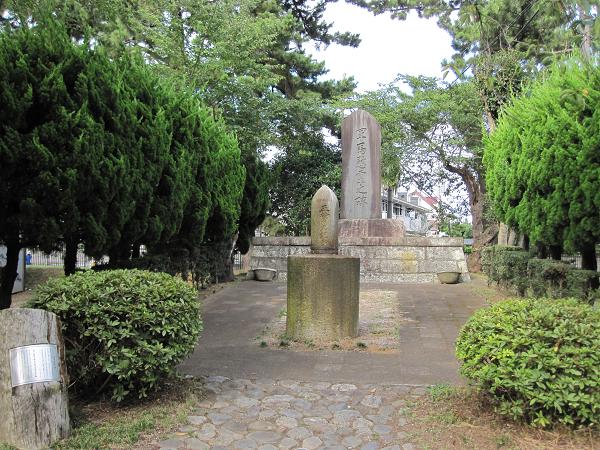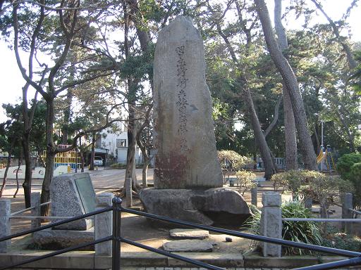 <「明治天皇駐蹕之処」石碑〜船橋市郷土資料館前> |